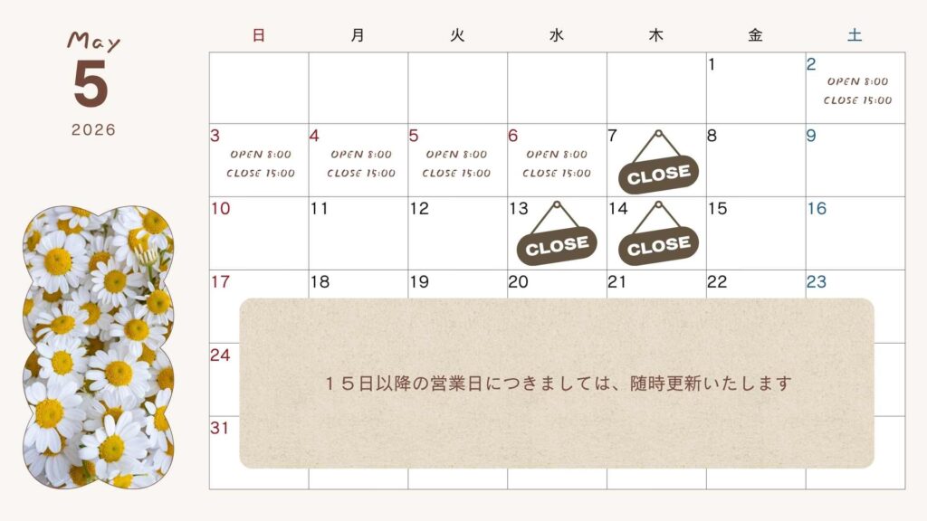 | ※臨時休業の場合もございますのでお知らせをご確認ください | |
