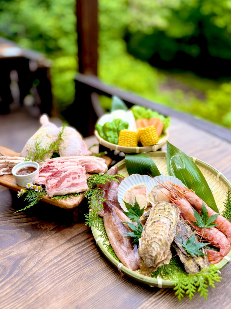※屋外BBQが難しい状況の場合は室内キッチンにて調理の上お召し上がりください(ホットプレートなどを用いてリビングの卓上で調理することはご遠慮ください)