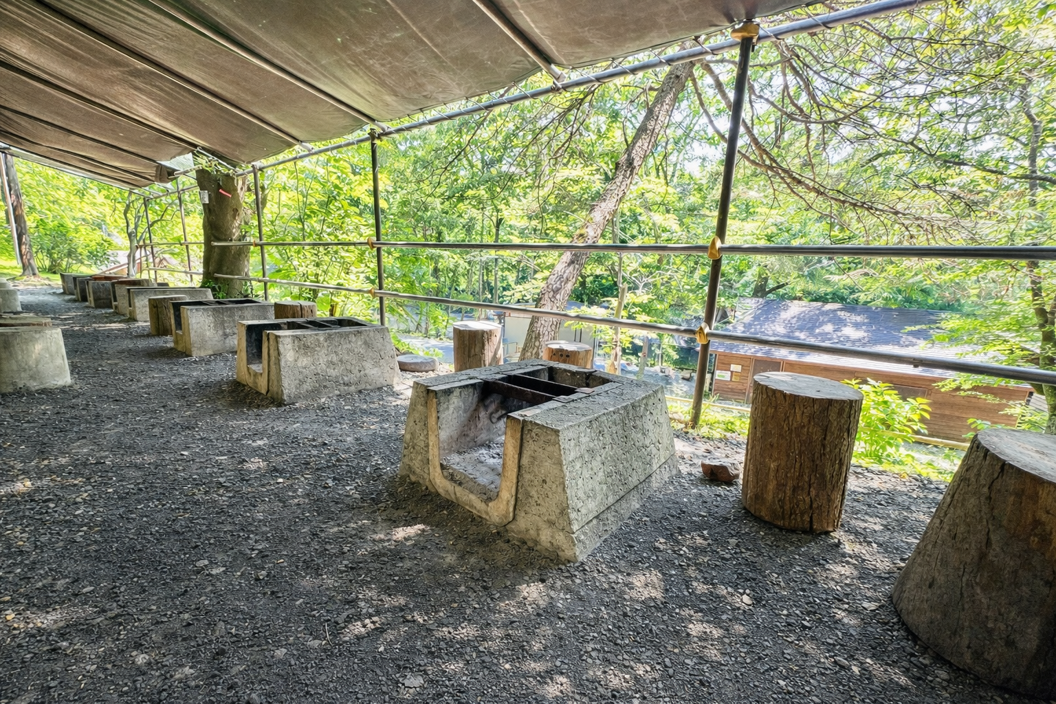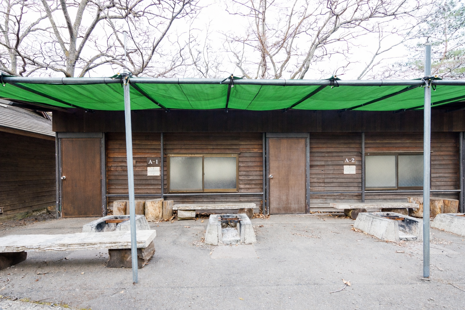 日帰り用途の東屋です。雨天を気にすることなく、炉を囲みながら、団らんが楽しめます。